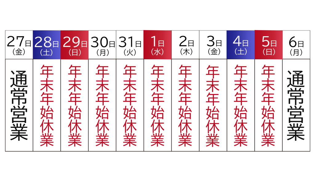 年末年始の休業期間について、下記の通りお知らせいたします。