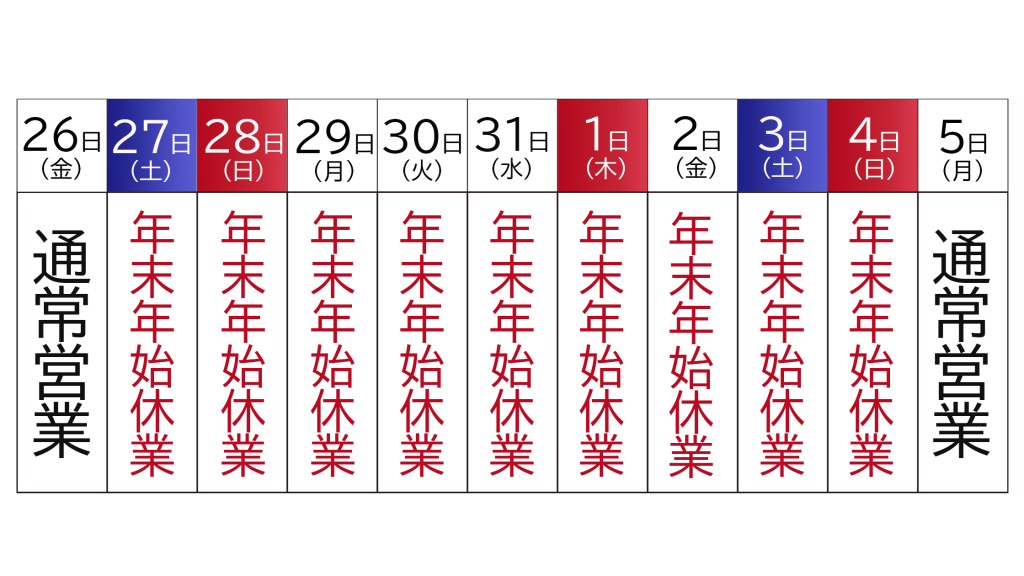 年末年始の休業期間について、下記の通りお知らせいたします。