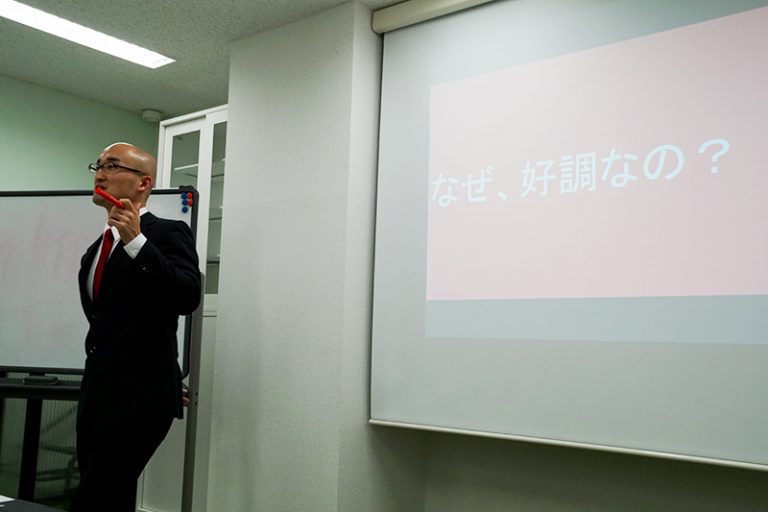 ▼真剣な表情で話し始めるシャッチョサン。締めるところはしっかり締めていきます。