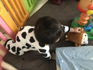 という事で、そもそも「ぬいぐるみ」をキャラクターと認識してない段階なのでおしゃべりするって感じではなかったですが、気になるようではありました。(何度かは声に反応して言葉を返してはいましたし)