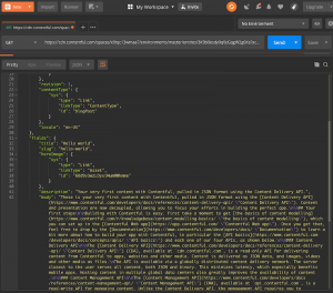 contentful のサイトに対して、認証キーなどを設定して http でリクエストを投げると…