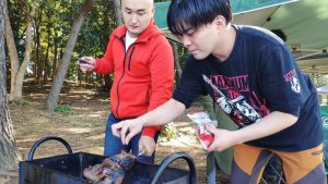 部員も揃ったところで、いざ、シュラスコ開始です!