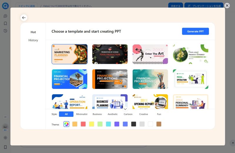 Feloでは「プレゼンテーションを生成」ボタンによって回答からPDFを生成することができます。