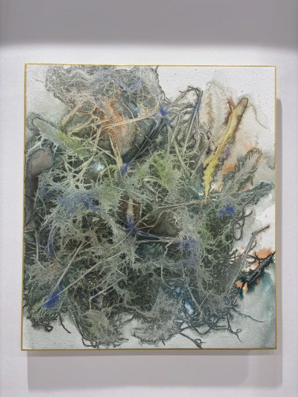 作品のコンセプトを沢山お聞きすることができ、植物の葉や根を使った作品が特におもしろかったです(2枚目は色紙に描いてる!)。