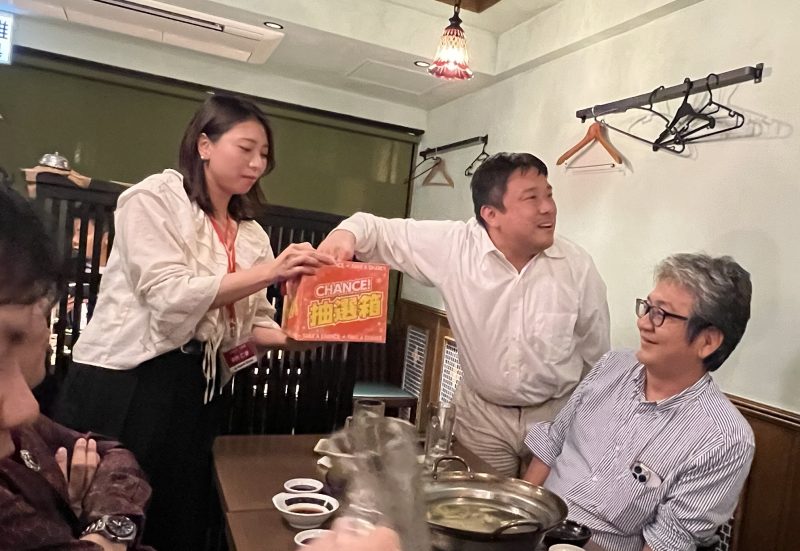 恒例の抽選会はKさんがようやく当たって大喜びです!😀
