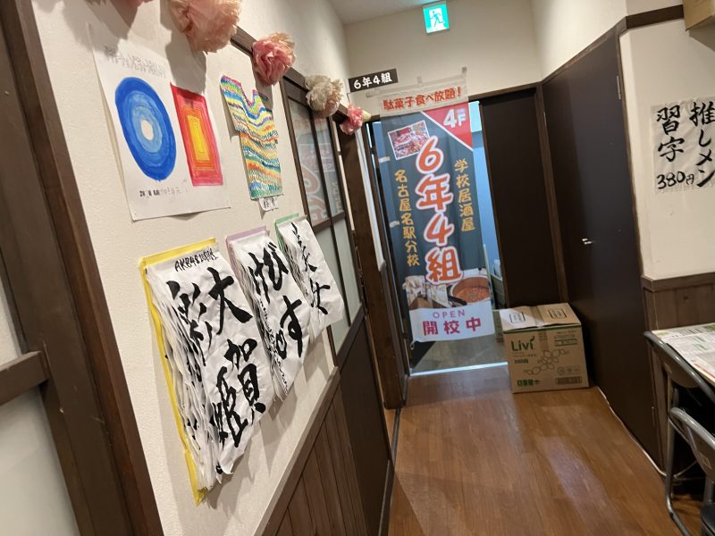 今回も10人越えの二次会です。どうやら学校居酒屋のようです。