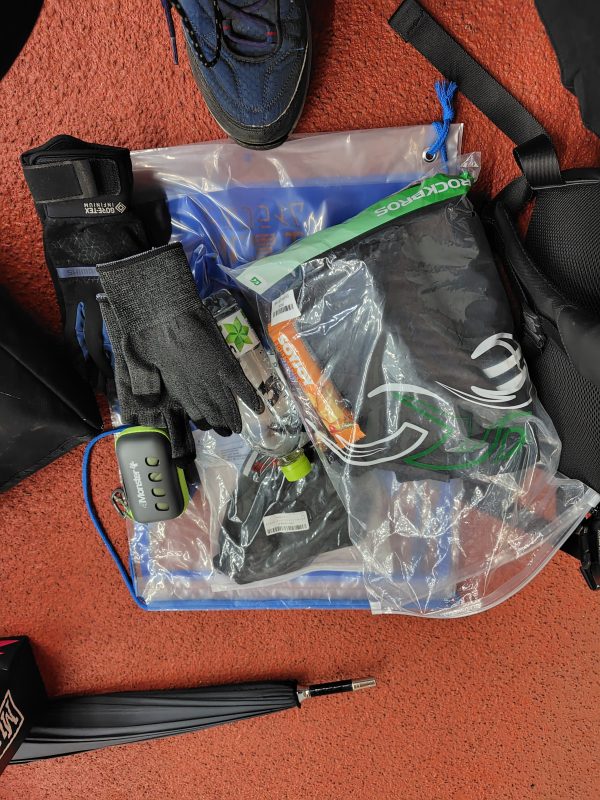手元に持っておくもの、先に運んでおいてもらうもののチョイスに悩みました。6)防寒着は最初から着ておいたほうが良い?でも走っている最中に暑くなるかも?など。