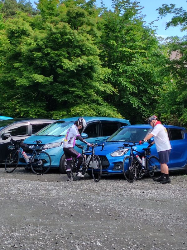 自転車を持って行くとなると、自走3)現地まで自分で走る。数十kmから100km以上走って集合する勢力も一定数居るんですよ…や輪行4)専用の収納バッグへタイヤ等を外して収納。電車やバスに積み込んで移動するなどの選択肢もありますが、今回は事前にWebで駐車場を取り、車へ自転車を積んでいきました。