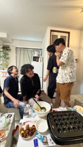 いざ始まれば、みんなでUberを頼んだり、タコ焼きを焼いたり、
