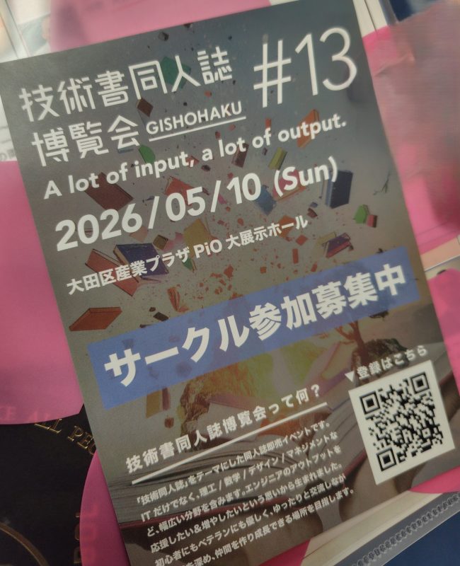 通称「技書博」と呼ばれる、技術書の同人誌を扱う即売会です。