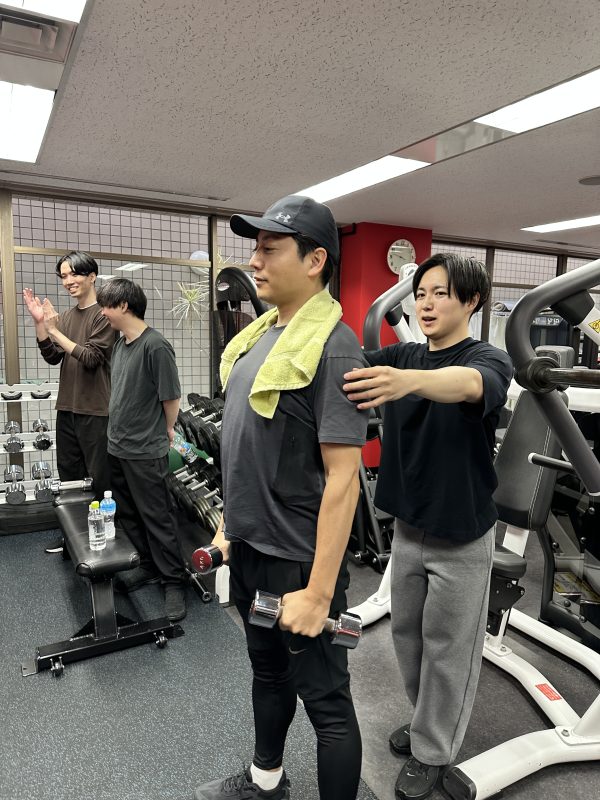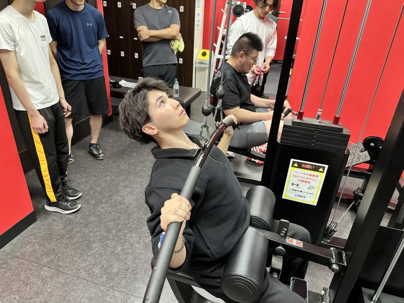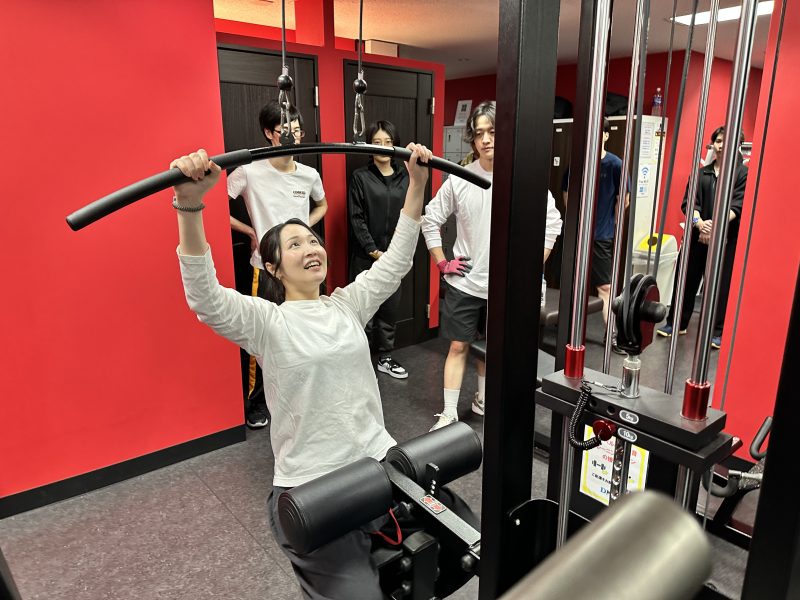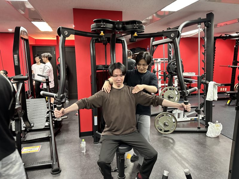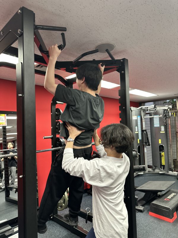 トレーニング中は、力尽きてしまうとケガにつながるため、補助をしっかり行いながら安全に進めていきます!