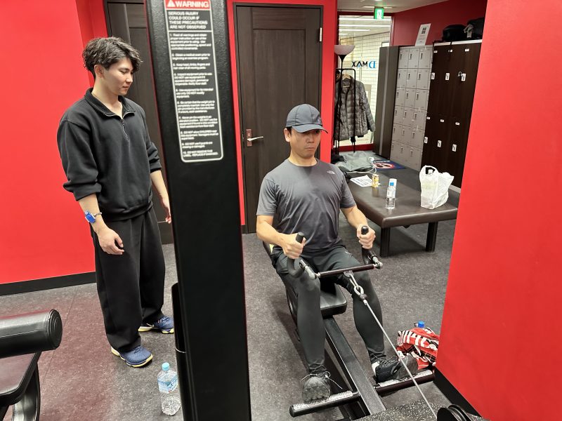 ▼別メニューのトレーニングも、Yさんが丁寧にフォームチェック