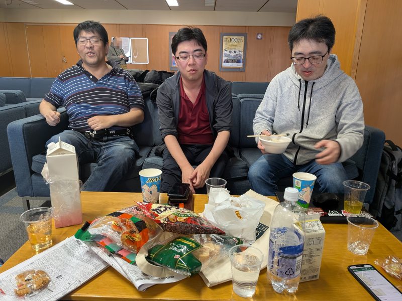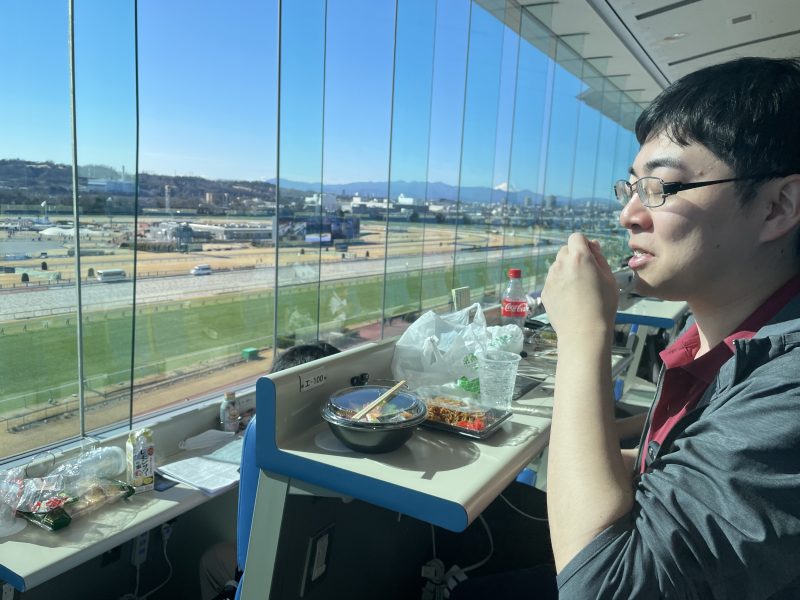 午前中の馬券の反省をしたり、それぞれの現場の話やプライベートの話をしたり。
